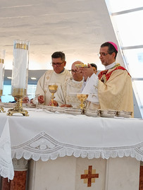 Na chegada à Catedral, Dom José Ruy presidiu a Santa Missa da Festa da Sagrada Família, marcando solenemente o início do Jubileu. A celebração foi enriquecida pela presença de padres da Diocese, que concelebraram a Missa. Durante a Celebração, o Bispo aspergiu o Povo de Deus, simbolizando a renovação espiritual que este Ano Santo propõe.
