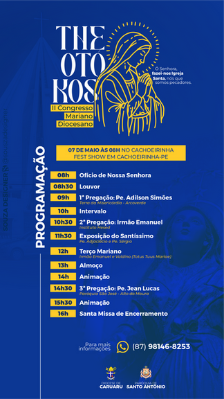 A Diocese de Caruaru promove, no dia 07 de maio, o II Congresso Mariano Diocesano. O evento será realizado no Cachoeirinha Fest Show, e não é necessário inscrição.